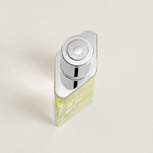 Le flacon aux lignes aérodynamiques, rechargeable, est fait de verre recyclé. Etui fabriqué à partir de pâte à papier ECF (Elemental Chlorine Free/sans chlore élémentaire ou gazeux), comportant au moins 40 % de matières recyclées.LE DÉTAIL HERMÈS